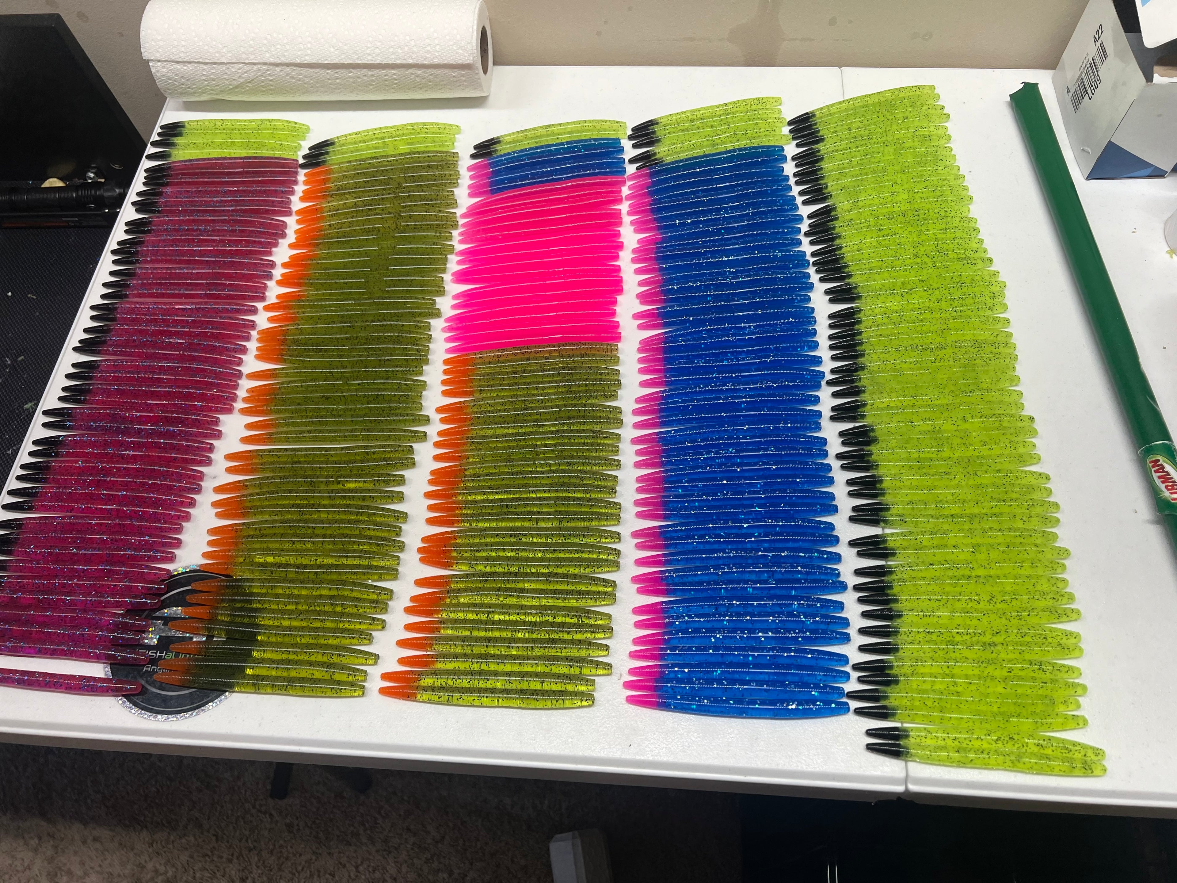 SENKO BabyBass Green and white 5-inch Senko with black and silver flake=BabyBass